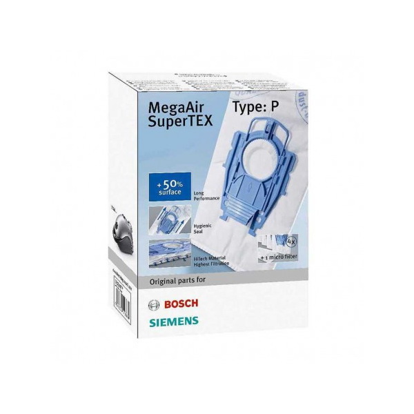 کیسهی جارو برقی مگاایر نوع P قابلیت استفاده در جارو برقیهای بوش سری 8 قدیمی و تمامی جاروهای بوش که قدرت متور آنها بصورت کشویی تنظیم میشود و جاروبرقیهای تنه بزرگ زیمنس را داشته.